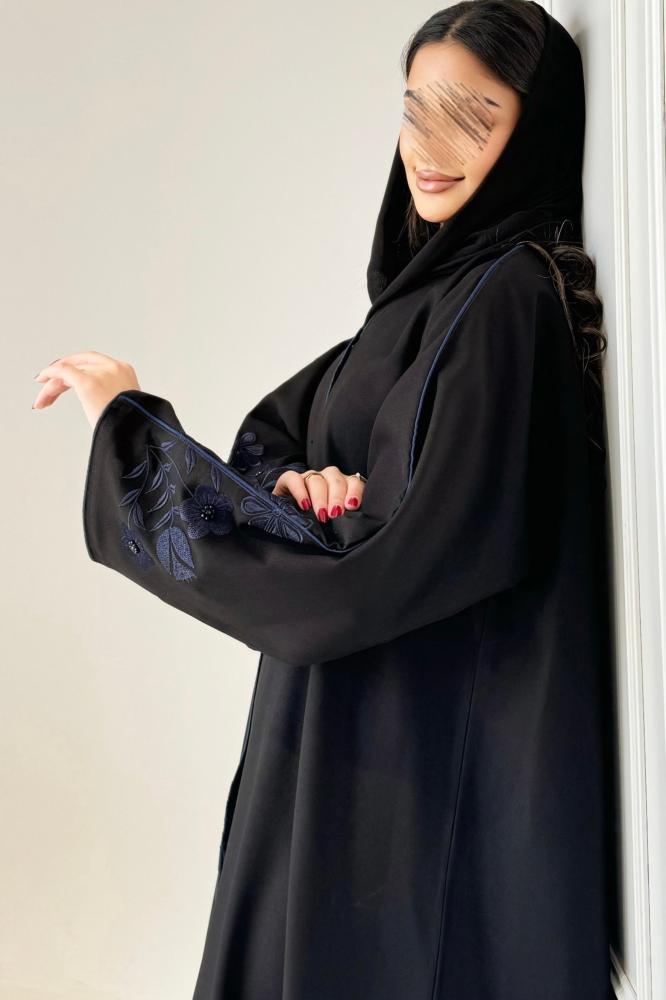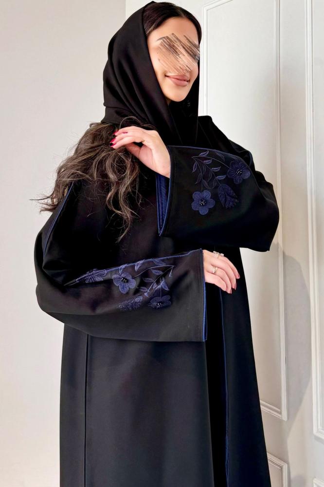عباية شك وتطريز ازرق ورد